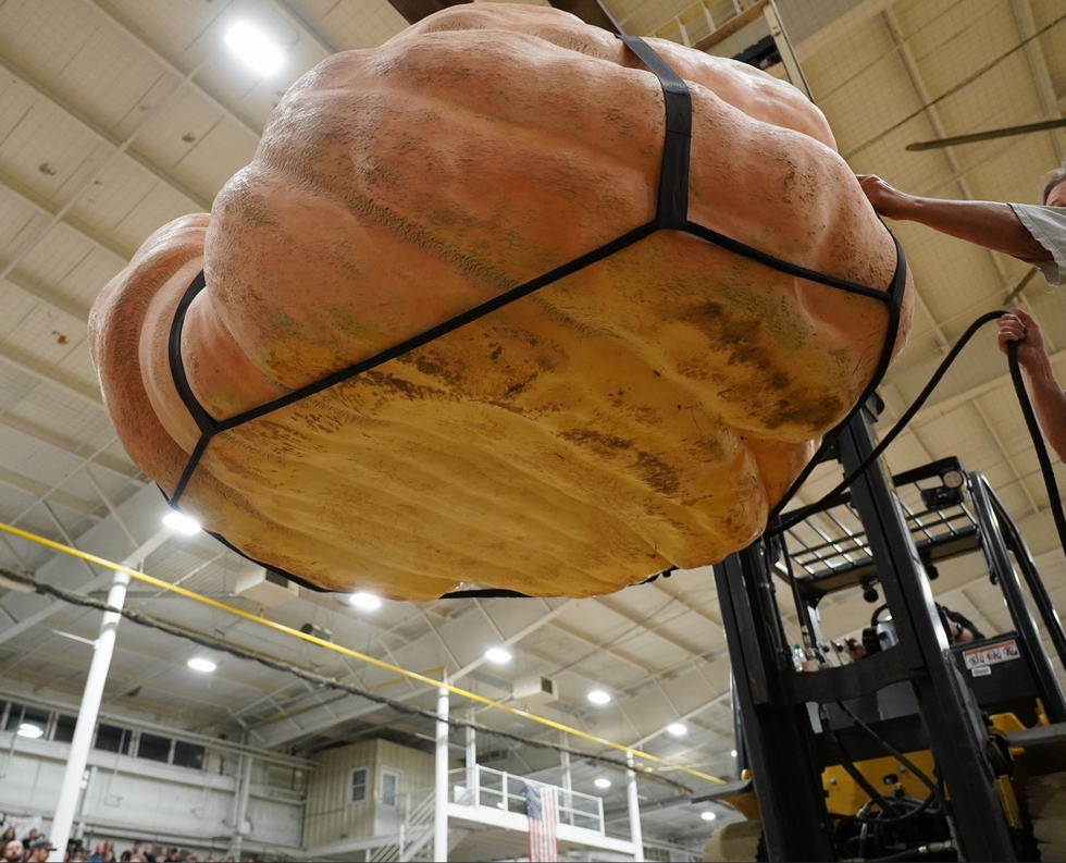 Even though this is already a damaged pumpkin, to stay in the same routine, the bottom is still inspected to the same level of scrutiny as all the other pumpkins are. The bottom is flat and for this portion of the pumpkin it would pass inspection. However, all it takes is one spot anywhere on the pumpkin, and the "Fish Egg" / "Edema" area about the diameter of a half-dollar is what cause this pumpkin to be classified as damaged. Other than that one odd spot, the rest of the pumpkin was flawless.