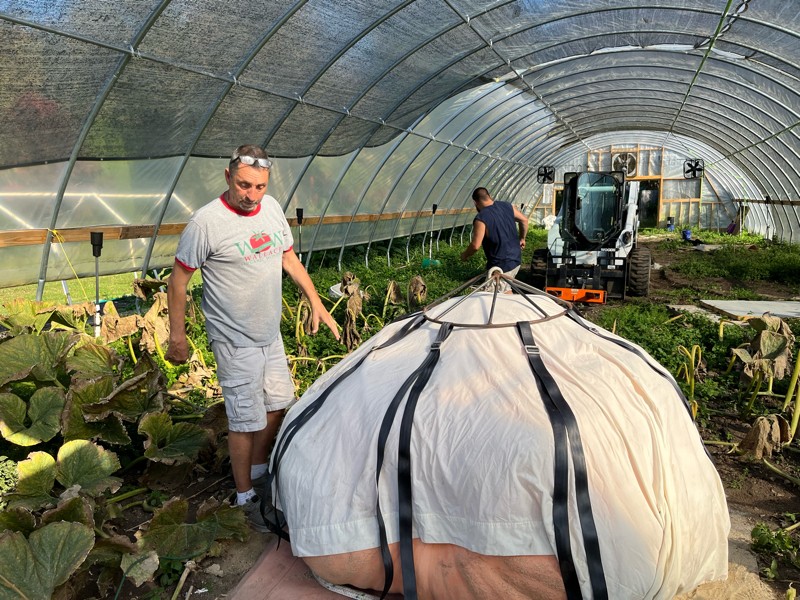 It is the day after Topsfield and we have to pick Gene's bigger 2198 Sperry pumpkin so the loaner skid steer can be returned.