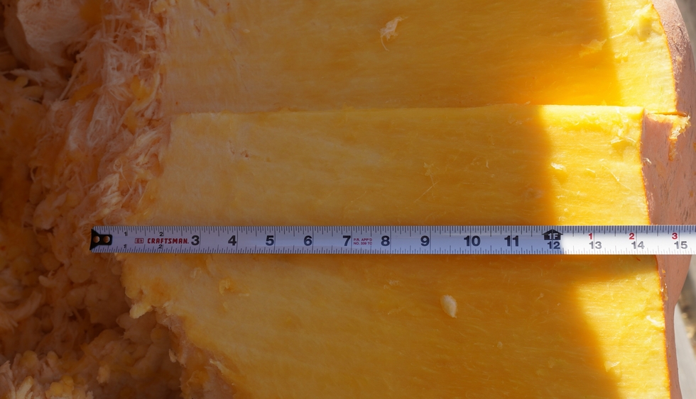 Cutting with the same wood style saw I have used for years seemed not to be working very well. Once a section was removed it was clear that I needed to use the entire blade to cur through very thick side walls. Here the thickness measured about 14" which is probably one of the thickest I have ever seen.