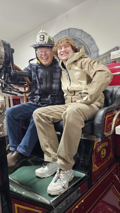 Luca and I on a 1914 fire engine.