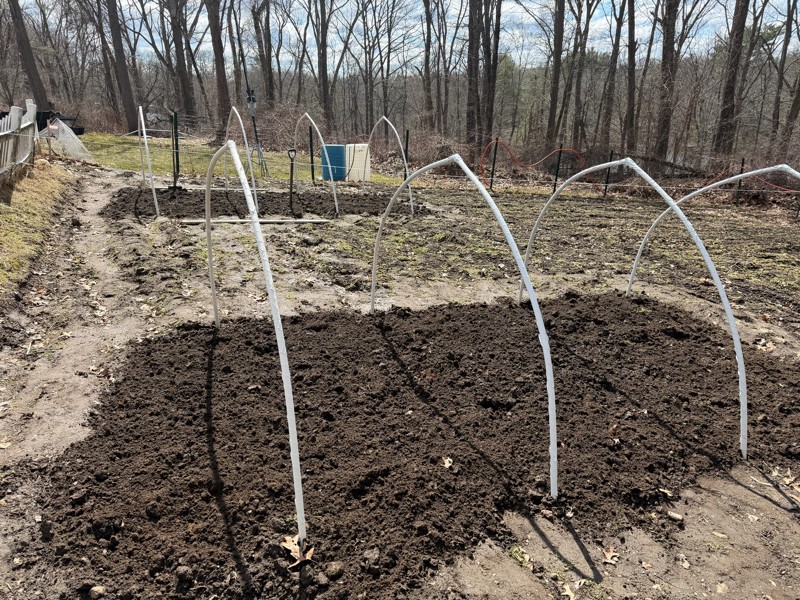 An oxidate drench was done today where the hoop houses are. Will eventually do the entire patch. Hoping to get the heating cables in and plastic on soon once it dries out a bit