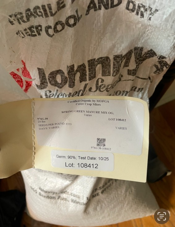 Cover crop is starting to sprout. Peas/Oats/Vetch from Johnny's. 10lbs over 5,000ft