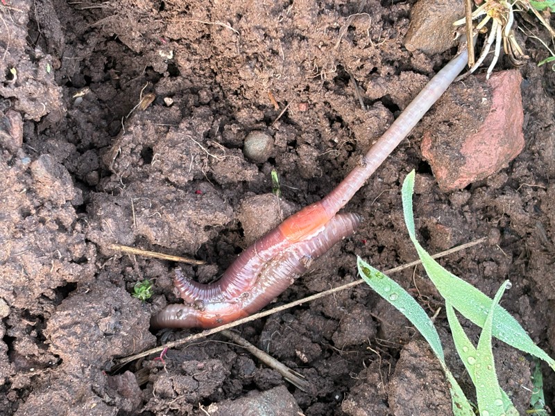 We have had some warm temps and some rain which made the worms happy. I remember these two from last year which seem to be rekindling their friendship. I had named them Steve and Jeanne.
