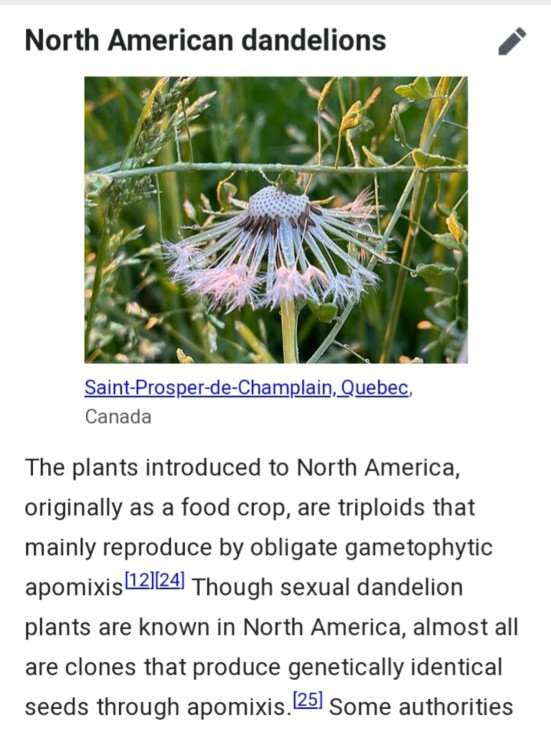 It's sad that I can't read a wikipedia article on dandelions without getting hit by a triple blossom of words I dont know: "triploids that mainly reproduce by obligate gametophytic apomixis".