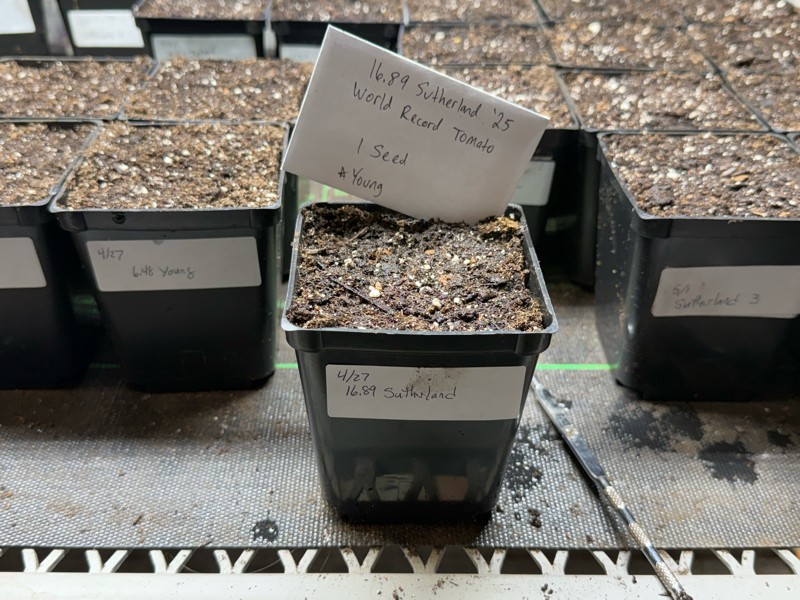 Started tomatoes today! Here is the lineup if all germ. (Fingers crossed) 16.89 Sutherland, 10.2 Jolivette, 9.50 Clayton, 9.06 Brown, 8.64 Porkchop, 8.56 and 8.52 MacDonald, 8.39 Young, 8.36 Strickler, 8.32 Tobeck, 8.22 Werner, 8.18 Young, 8.02 Greene, 7.91 Trombley, 7.50 MacDonald, 7.47 Young, 7.32 MacDonald, 7.09 Werner, 6.48, 6.13, 5.64, 5.49, 4.42, 4.14 Young, 3.21 Greene and 3 Sutherland crosses from a couple of years ago. Isn't it a great time of year!