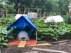 I built this 12� trellis for long gourds. Field pumpkin(s) will also go here.