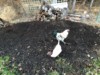 Horse manure that has been broken down. Thinking about using this to bury vines next season. That�s my Easter egger Roo and a Plymouth Rock hen in the middle.