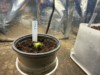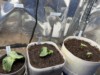 These seeds I didn't need to peak at. 198.5 Crews (202.5 Crews x self) However the chosen one is coming up with the seed. I piled some dirt around it and stuck it under the light.