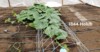 Long gourds are advancing across the top of the trellis!