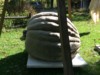 The 1407 Jutras squash is at day ten today, and doing very good. I have a twin in the background, pollinated the same day. It is just a tiny bit smaller than the chosen one. That one has a stem split that is perpendicular to the stem, right at the stem / vine junction, so i chose the other one. The one that has the mill fabric also has stem splits , but the y run parallel with the long stem. One split on top and one on the bottom. They are healing as it is growing, but i must keep an eye on them that the pumpkin does not start to split. I will cut the back up off in a few days.