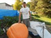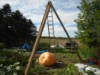 pic of back yard ,,picture ,,same seed ,,one on the right set on june 29 ,,the other july 11 th ,,bigger pumpkin ..has lager pumpkin ,,hummm maybe i pollanted to soon.?