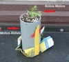 Had mentioned the 282 Scherber plant yesterday, but then came to the conclusion that a pic can tell much more. Let�s see how this plant will develop. BTW, the red arrow points at a root coming out of the bottom of the plant tube. Thus, I transplanted it into a bigger pot today. Maybe it was just lack of soil which had kept the plant at bonsai size, LOL.