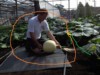 Started to create an S-curve in the main vine of my 1209 Shenoha plant. It�s only 2 days after pollination, but I don�t want to wait too long with S-curving the fruit position out of the idealized straight main vine direction. This curve is smaller than one might think (because of the short internodes of this plant). The fruit is about 1.5 ft from the idealized straight line of the main vine.