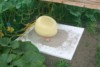 So here we are now, that�s the 150 sqft keeper pic! (1874 Mathison x open). The fruit is 26 DAP, could be bigger, but to be honest I haven�t even thought that the plant would set a fruit. Although the 1874 Mathison plant was one of my best plants in May/June, it seemed to have some troubles in June/July (some leaves died), and the first pollination aborted. According to Murphy�s Law, this small plant then set three successful OPEN pollination over a weekend when I had been away. Few days ago I decided to let this one on the main vine be the keeper and culled the other two. BTW, this plant isn�t alone, it�s hosting the friendly mosaic virus. This little guy will probably slow down the fruit growth a little, so that I will have a pumpkin to harvest from my 150 sqft plant. Last year my 150 sqft pumpkin grew just too fast and had a BES around August 19th.