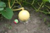 Let�s see what happens as this fruit grows (hopefully it will grow for the next 10 weeks). My guess is that the junction between vine and stem will then rest at about 1 - 1.5 ft above ground, somewhere between the red-arrow and yellow-arrow positions.