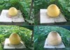 Look what I�ve done today: You know, pumpkins can have all kinds of shapes...round, flat, high wheels etc. Now let�s assume the shape of the pumpkin is an ellipsoid with three different principal axes (this FP serves as a nice model compound). This FP has an actual weight of 66 lbs. Is it heavy or light or on chart??? Well, it depends on where/how the fruit was grown. In its original position (left) the OTT prediction would have been 60 lbs. Hence, the fruit is 10% heavy. Now let�s assume the fruit had been in a different position (middle), OTT prediction would have been 66 lbs...fruit on chart. Oh well, and we also know tall fruit (right)...OTT tells us that it should be a 71 lbs fruit...unfortunately it goes light, -7%.
