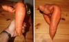 Had to pull this Bangor carrot today (its weight was 2.50 kg, i.e., 5.5 lbs). Found a soft area on the top part of this nice root and decided that it definitely won�t have the power to survive for the next six weeks. As I found that the Bangors are much more tasty than the Flakkee carrots, I decided to pull it now (and to have a nice carrot to eat...and to share with my guinea pig) rather than leaving it in the ground and then having a handful of mud.