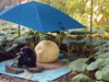 Found a nice 40� clamp on umbrella on clearance at Sams, 13 bucks!!! Fully adjustable angles, attaches bu clamping to the rebar seamlessly. Exactly what I need to keep my overhead watering off of the pumpkin.