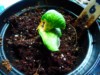 1526 seed starting to germinate. I accidently cracked one of the sides of the seed shell when I was sanding the edges with a nail file. That's why the seed looked like it went through a wood chipper. Cots will probably look deformed because of the cracked shell.