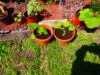 Pumpkins and squash enjoying the sun. Note that the 2002 is in a bigger pot now.