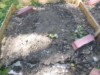 122 Lyons (220 Baggs X Self) marrow planted yesterday in 4 cubic feet of 50% composted cow manure and 50% compost. Temperature was about 90 degrees when picture was taken.