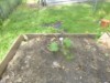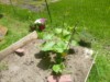 122 Lyons Marrow plant. Starting to train a secondary vine to run south to north.
