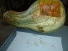 Harvested seeds from Cushaw Green Striped Squash. Saved a dozen. I think it will be an orange fruit next year since I saw some orange on the fruit.