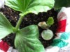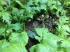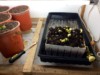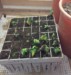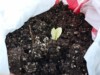 A poor start (the dirt is not sterile). Way up in the right hand the smallest seed germinates first!