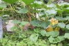 There's a few small things worthy of note here. There is a cucurbita plant in the lettuce which shows a severe deficiency. I don't know the exact cause. I believe with some certainty that it is ph/calcium related. I corrected with calcium towards 7.0 and the next leaf shows healthy growth and color. (I also boosted transpiration by adding a fan.) The deficiency in the older leaf has not corrected itself. I've read that sometimes the less mobile nutrients, when corrected, will improve the new growth but won't fix the deficiency symptoms in the older leaves. That seems to be the case here.