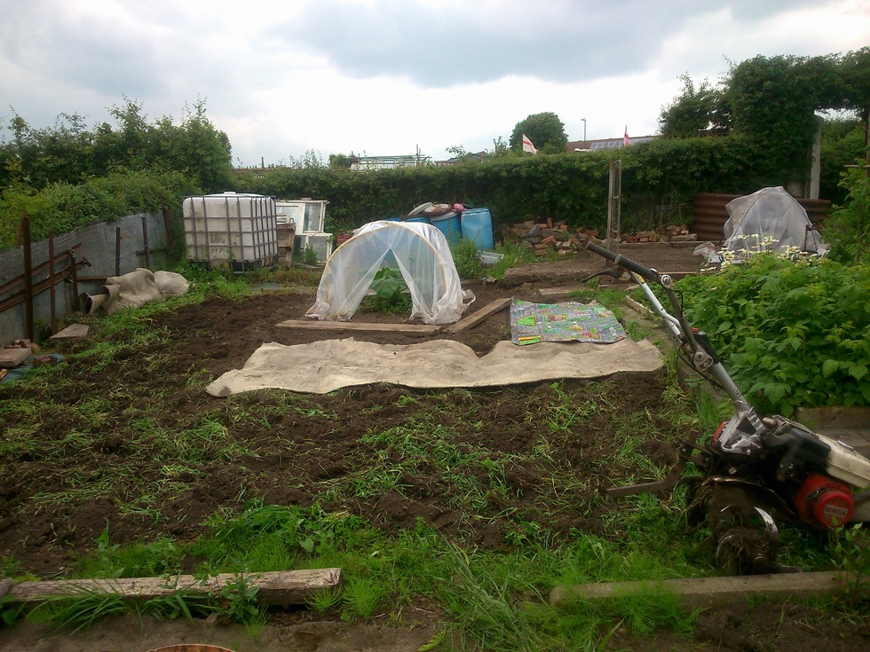 323 LaRiviere - Tilled in the rye today and have covered it back over with carpet to keep weeds at bay. Well and truly knackered!