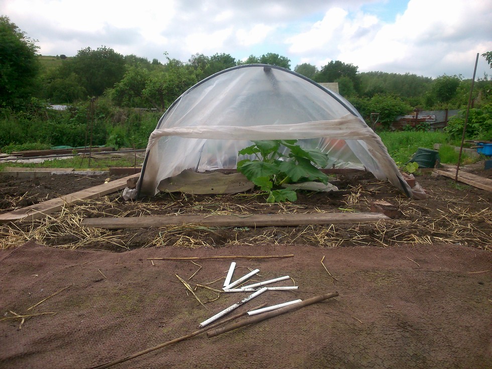 854.5 Frei - Really happy with this plant which is now at 4' which makes it 1' of growth over the last two days. Culled down to one plant today and moved the tunnel sideways to keep this one in for as long as possible. Now that all the other patches have been tilled I can keep on top of this and the 874 patch as they start to vine.