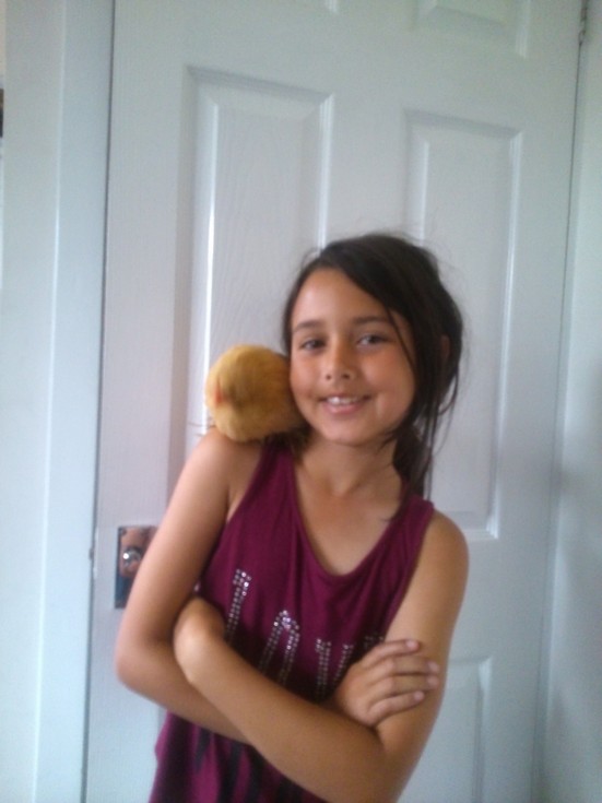 Sophiana with CoCo the chicken. These chickens just prefer the our house to garden. Picked up some red wood yesterday to start making a coop and run. Somethign raised and fox proof.