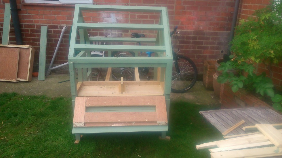 You know how doors of German cars are better built and weigh a ton, well this is the German equivalent of chicken coop doors so I managed to over engineer this one as it will flatten the kids when they open it up in search of eggs.