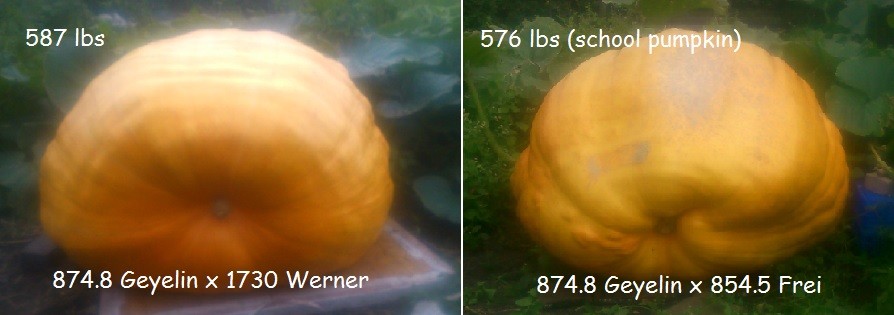 There's relatively nothing between them other than that the school pumpkin 'thumps' heavier and mine is 3 days younger. Both pumpkins are considerably brighter orange but my phone camera seems to have given up the ghost and is putting out some poor quality pics.
