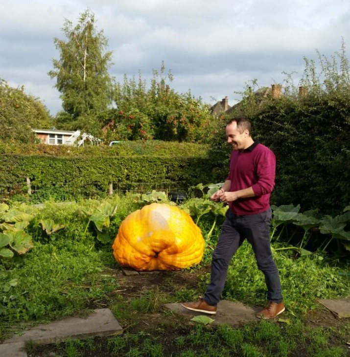 The 86 DAP school pumpkin (874 Geyelin x 854.5 Frei) has around 24 hours left on the vine before we load it up for Mondays RHS Giant Pumpkin Competition in London. Taping around 600 lbs and is starting to look a little narly. Shame about the sunscald on top as it has developed a nice colour. Not bad for a first attempt! Grown in a 200 sq ft patch
