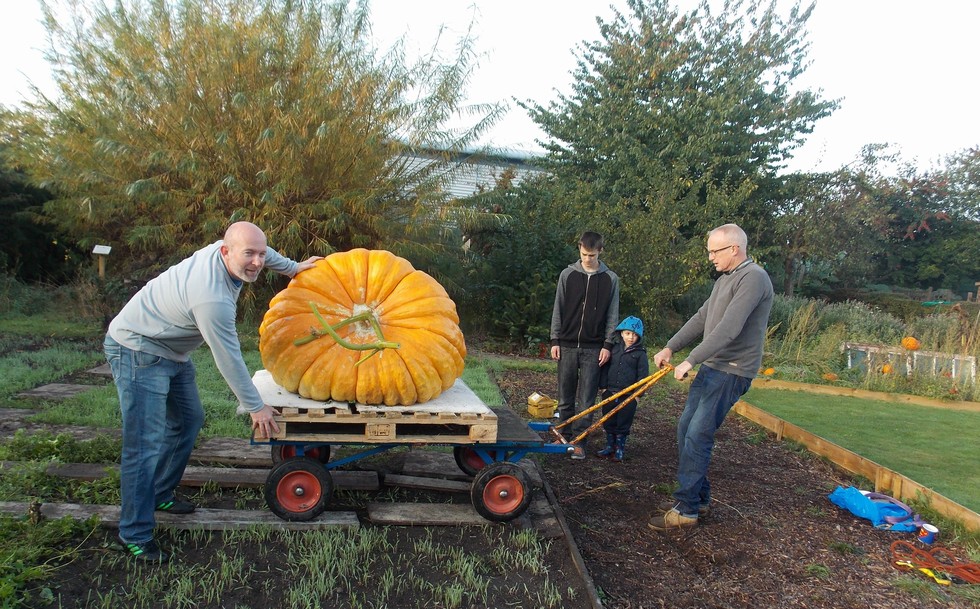 874 x 854 off the patch with Craig (left) and Geoff (right) who are both teachers at the school. Pumpkin was grown by Geoff in 200 sq ft.