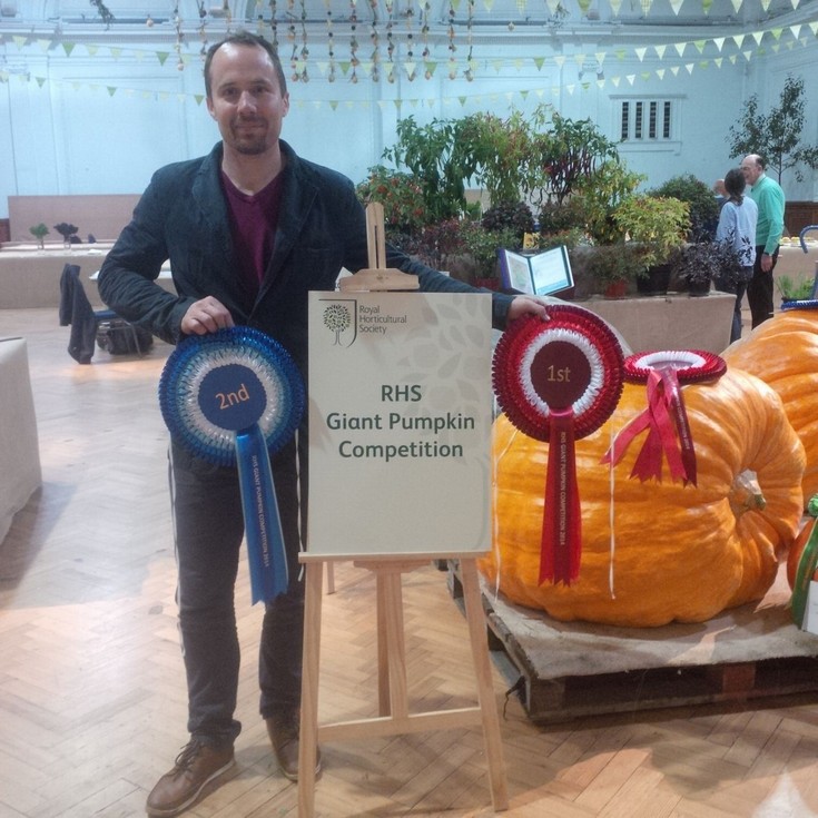 I feel very fortunate to take 1st place which was obtained by default following the loss of bigger pumpkins for Ian and Stuart Paton and another grower from Wales.