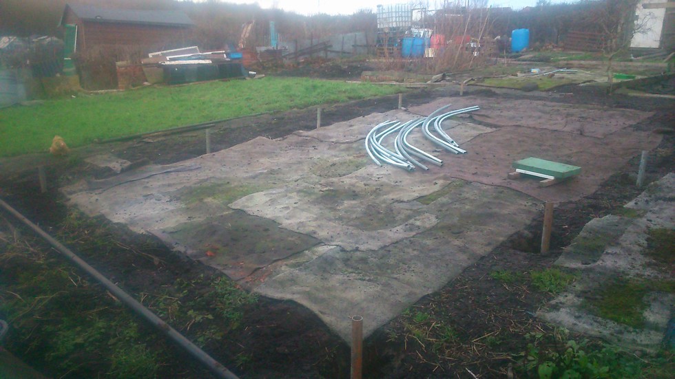Step 3 - Ground tubes were cemented in 18" deep holes (8" square) to a depth of 12" using postcrete (6 x 20kg bags was ample for the 10 tubes). Tubes were set 6' apart and 14' wide.