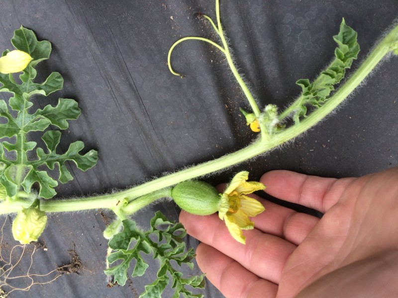 A very large round fruit on the 229 Edwards. Pollinated, but late in the day. It's on a secondary vine so it's no loss if it doesn't take.