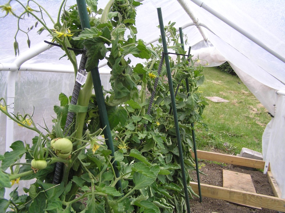 Started topping off the Tomato plants at 4 ft. If you look close you can see some of the tops cut off.