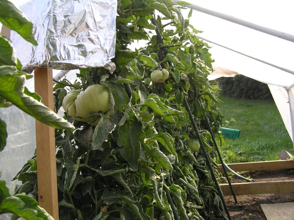 The Maters are just starting to grow. on a constant diet of WOW wonder brew. I'm starting to cover the maters with Aluminum foil to keep them shaded. Now I need to see if my wife will part with some of her nylons so I can make a sling for the big ones to support the weight.