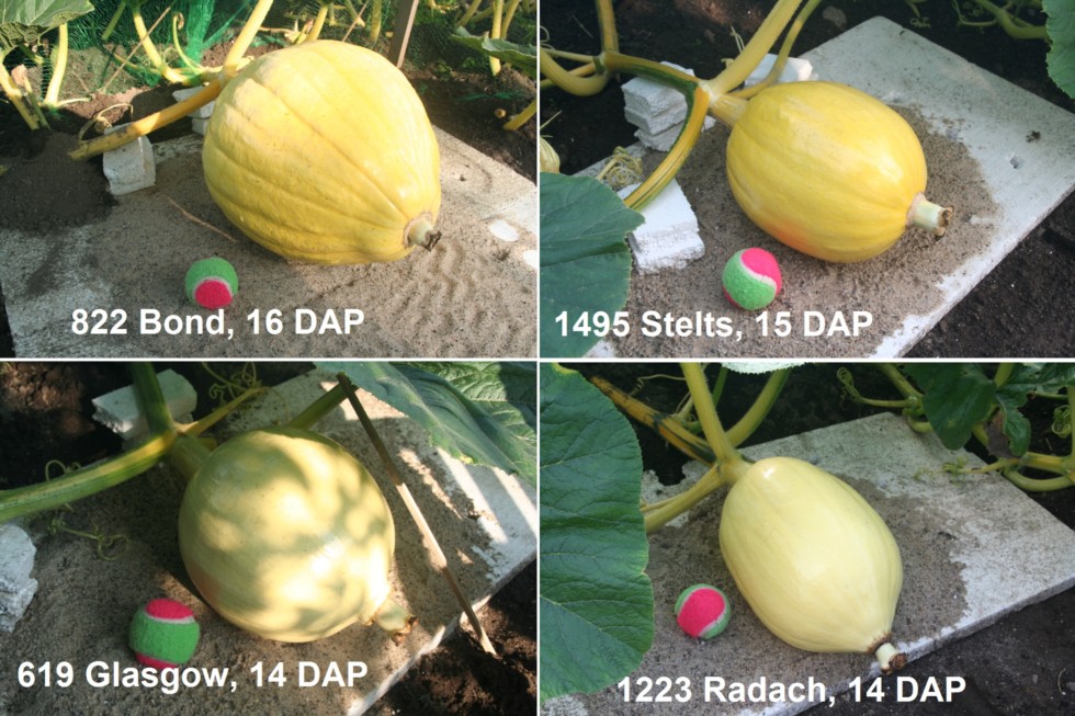 Update: The 1495 Stelts, 619 Glasgow and 1223 Radach fruit have basically the same OTT, and the 1495 shows the color I want to see. The 822 seems to be something special, it started to grow like crazy and already has some ribs (fingers crossed that this doesn�t mean anything bad).