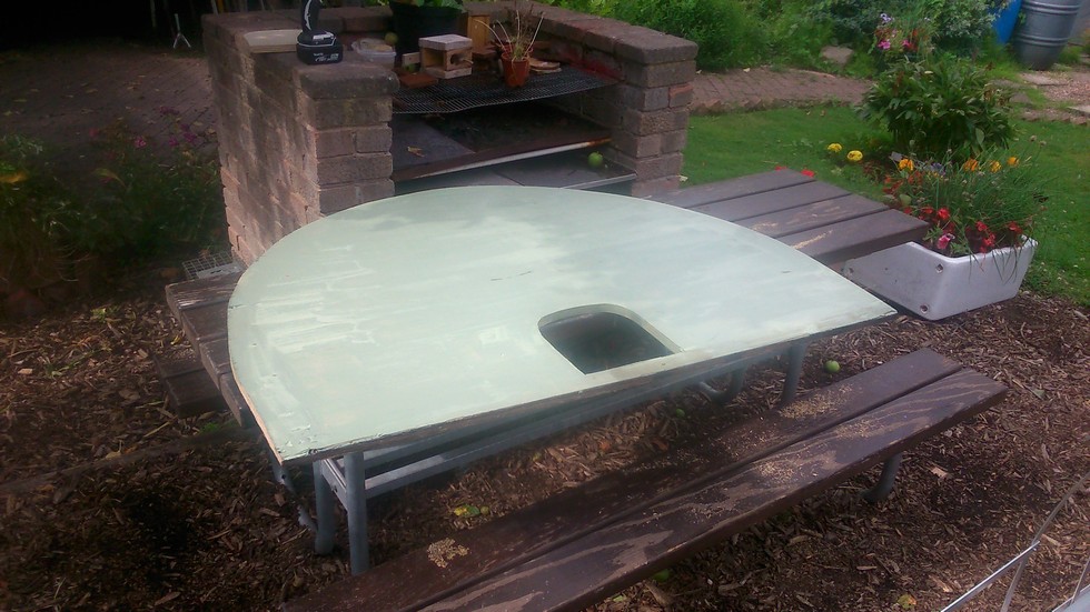First coat of willow green paint for the wall going on the internal frame.