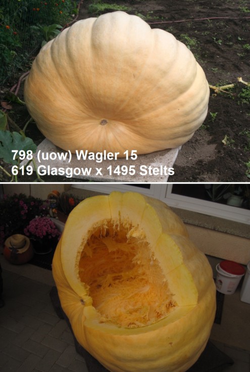 This is my biggest pumpkin this year. Two inches more OTT than my PB, but it went 12% light (with reference to the 2013 OTT chart). In addition to the wheel shape the rather thin walls around the blossom end made this fruit be so surprisingly light.