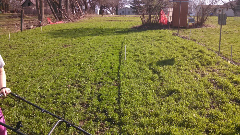 My beautiful wife mowed down rye today, I found its easier to manage when cut at 8". Very nice day today sunny and 75.