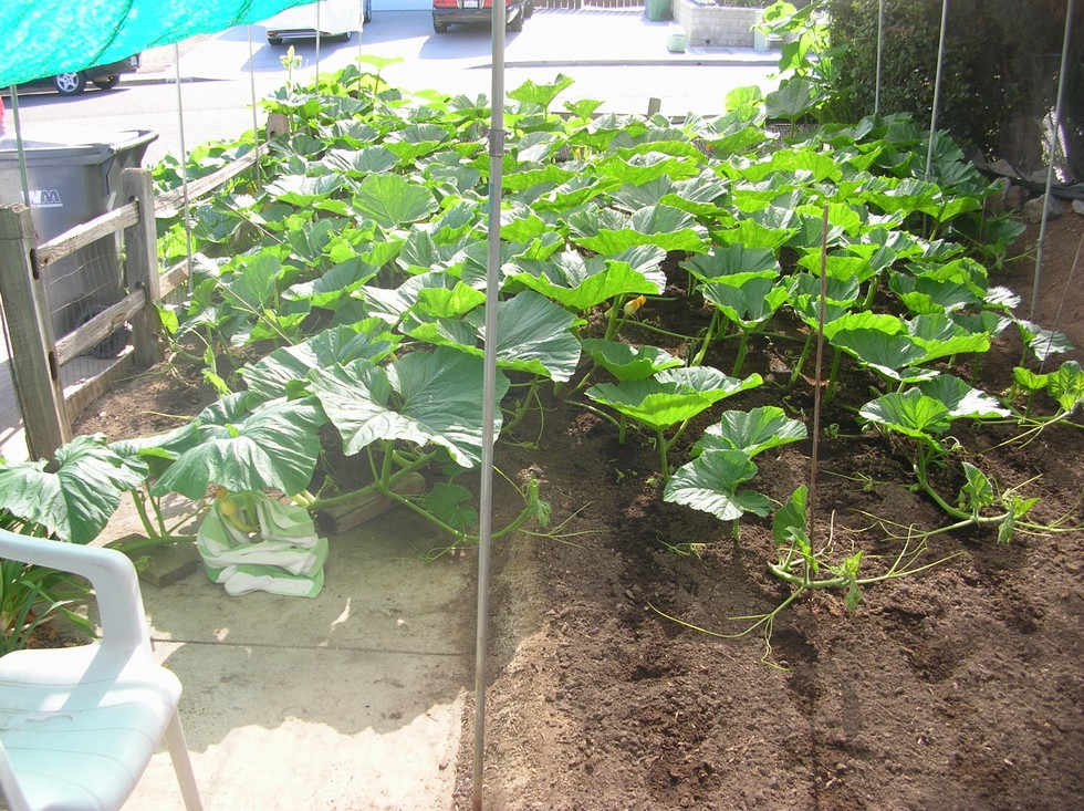 It's been about a week and a half since the really high temps had hit here. The weather has been perfect since then and has really helped the 2230 to recover from the heat. I really thought I was going to have to pull the plant since the heat had just about halted more than half the vines and was still too small to support a pumpkin of any size. Several vine tips were cooked beyond recovery but all the others that had slowed way down are now starting to grow normally once again and filling in the area. One interesting thing I noticed is that the side vines before the heat hit were thick, but after the heat they became skinny up toward the tips and now that the plant growth is recovering the vines are once again growing thick except the skinny areas still remain skinny. So my secondaries coming off the main vine are thick, then skinny and then thick again. My small patch area should be filled within a week and then I'll try to get the plant to cover the whole driveway to gain a few hundred more square feet. Weather forecast has temps in the low to mid 80's for at least a week out.