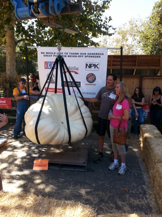 So here we go! If I can just go a few hundred pounds heavy maybe I can beat Chris! They taped her at 361 OTT which was larger than I taped her at home. She must have grown on the trip up to the weigh-off! More likely having 3 people taping it instead of me by myself trying to get a good measurement was the difference. I'll take it...even bigger than I thought! I am just hoping to best my PB of 912 and break through the 1000 pound barrier. I really want to break 1000...please please please! And the scale says....1082! Finally I broke through!!! And she went heavy too. Even with all the high temps we had this year. I may not beat Chris...but I am so happy I feel like I just did. LOL