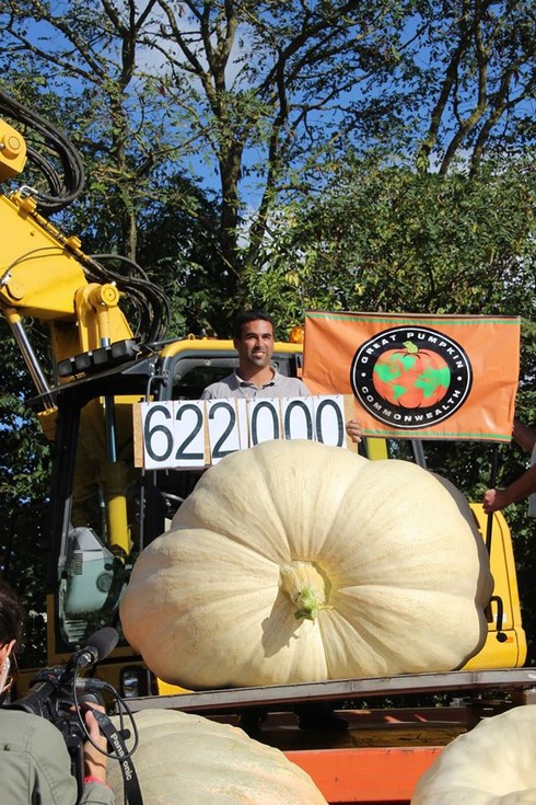 Hi Growers, I finally found time to start my diary again. 2016 was a great year, I won first place at the GPC French weigh off with 1371lb but as you see the pumpkin looks young cos of a very late pollination. It could have have grown another 40 days as my usual pumpkins. I only grew one plant : 2096 Meier x Self. L�ane is posing for the photo