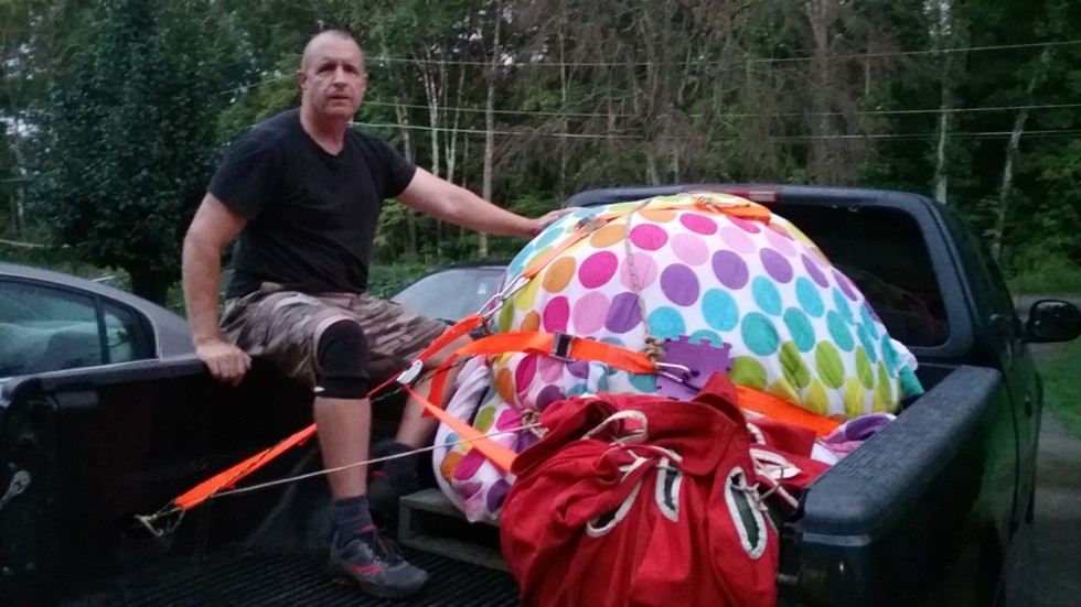 Knoxville bound tomorrow. Looking forward to seeing old friends and making new ones. One of the perks of using your daughter's bed spread to cover the pumpkin is you can play Twister after the pumpkin is unloaded.