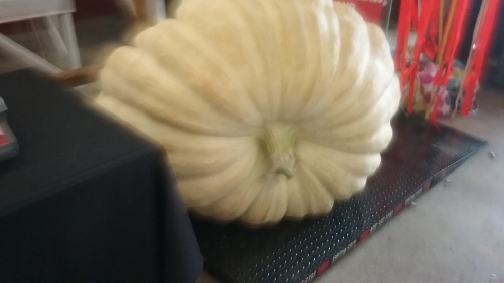 Jessie G on the scale at the Dixie Classic Fair. We knew there might be an issue with the accuracy of the scale at Elkin. We had less than ideal conditions as the scale was set up on grass. Danny Vester had weighed his pumpkin before Elkin at 1263 and it weighed 1237 there, so we knew there might be an issue.